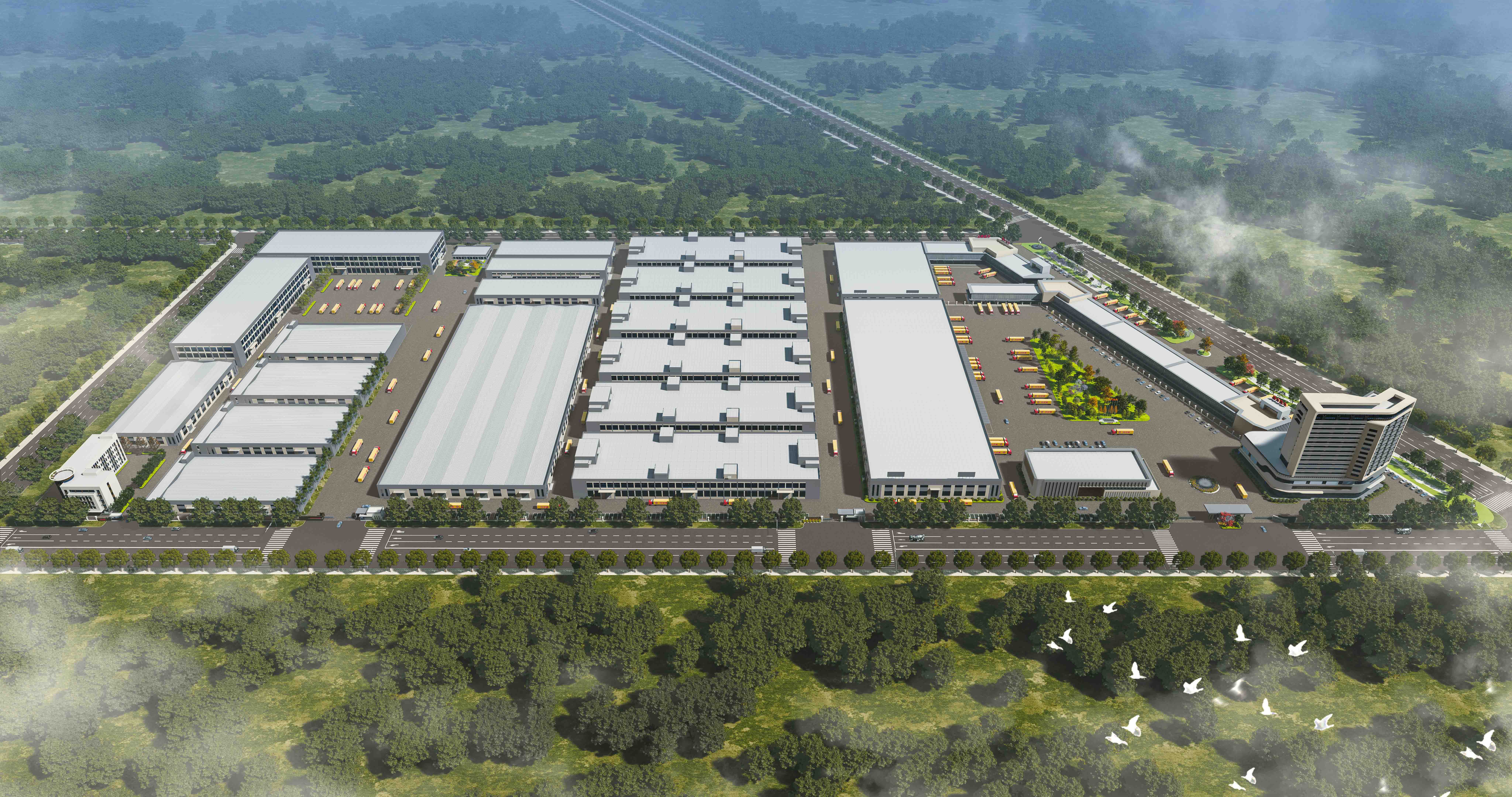 •含生产大楼、研发办公楼、财务结算中心、智能仓储中心、宿舍楼等,3年内建成后,将成为凯发k8一触即发迈向高质量上市发展的集团总部。